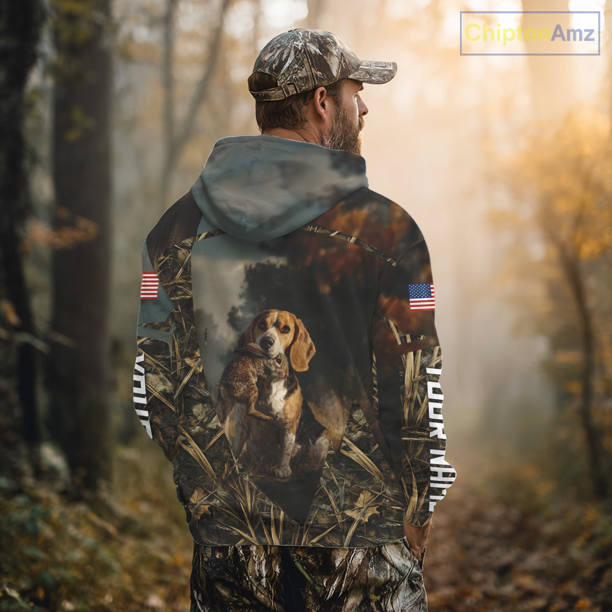 Custom Rabbit Hunting Beagle Dog US Flag Camouflage 3D Shirts, Rabbit Hunting Clothes NBT229