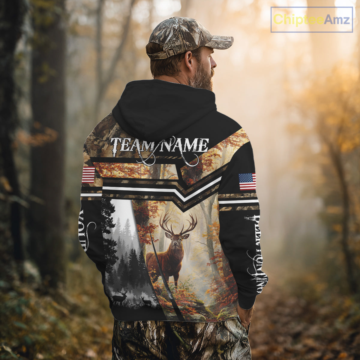 Red Deer Hunting Autumn Camo Custom Name American Flag - Best Gift Ideas for Hunters NBT40