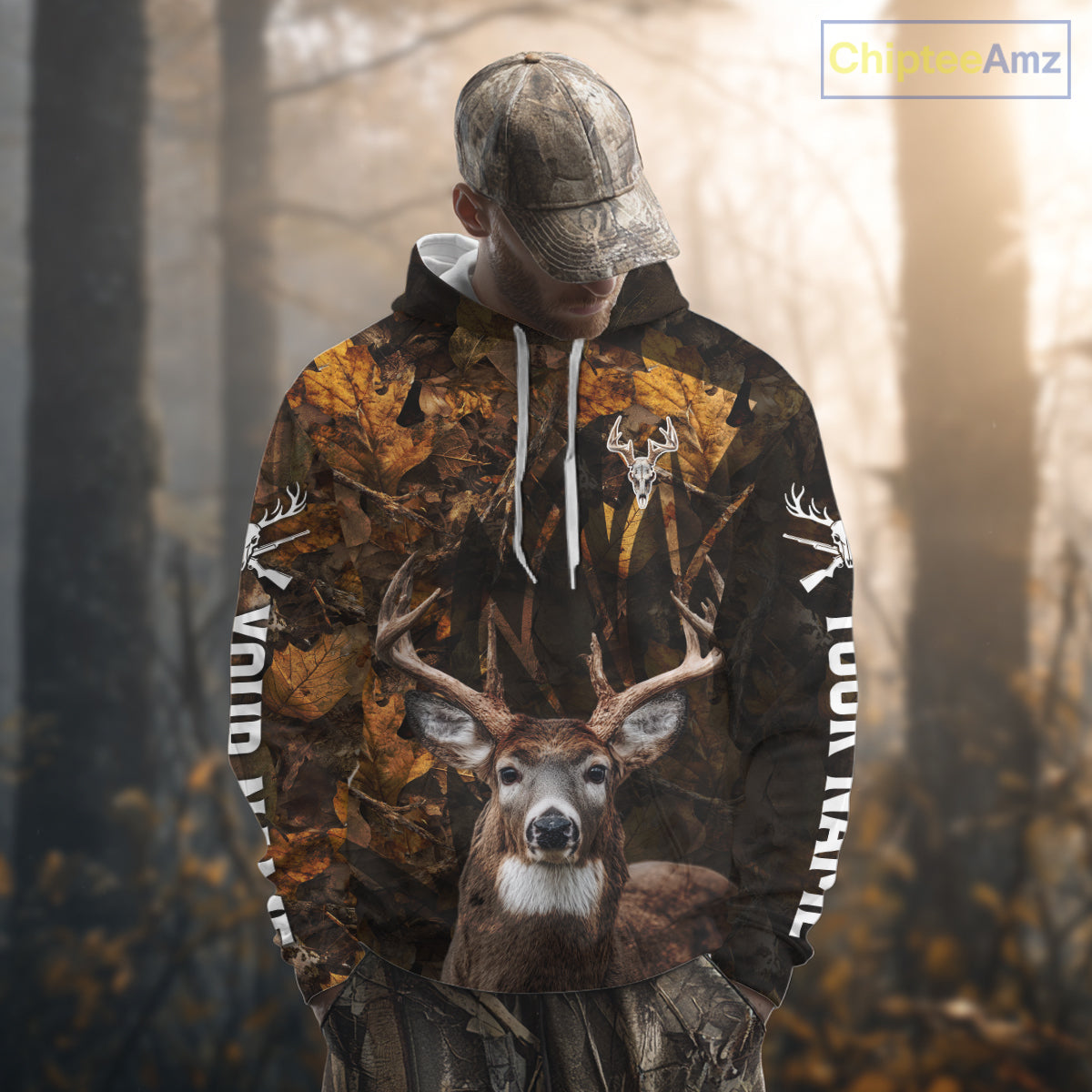 Whitetail Deer Hunting Custom Name Camo Shirt, Personalized Deer Hunting Clothing NHT257