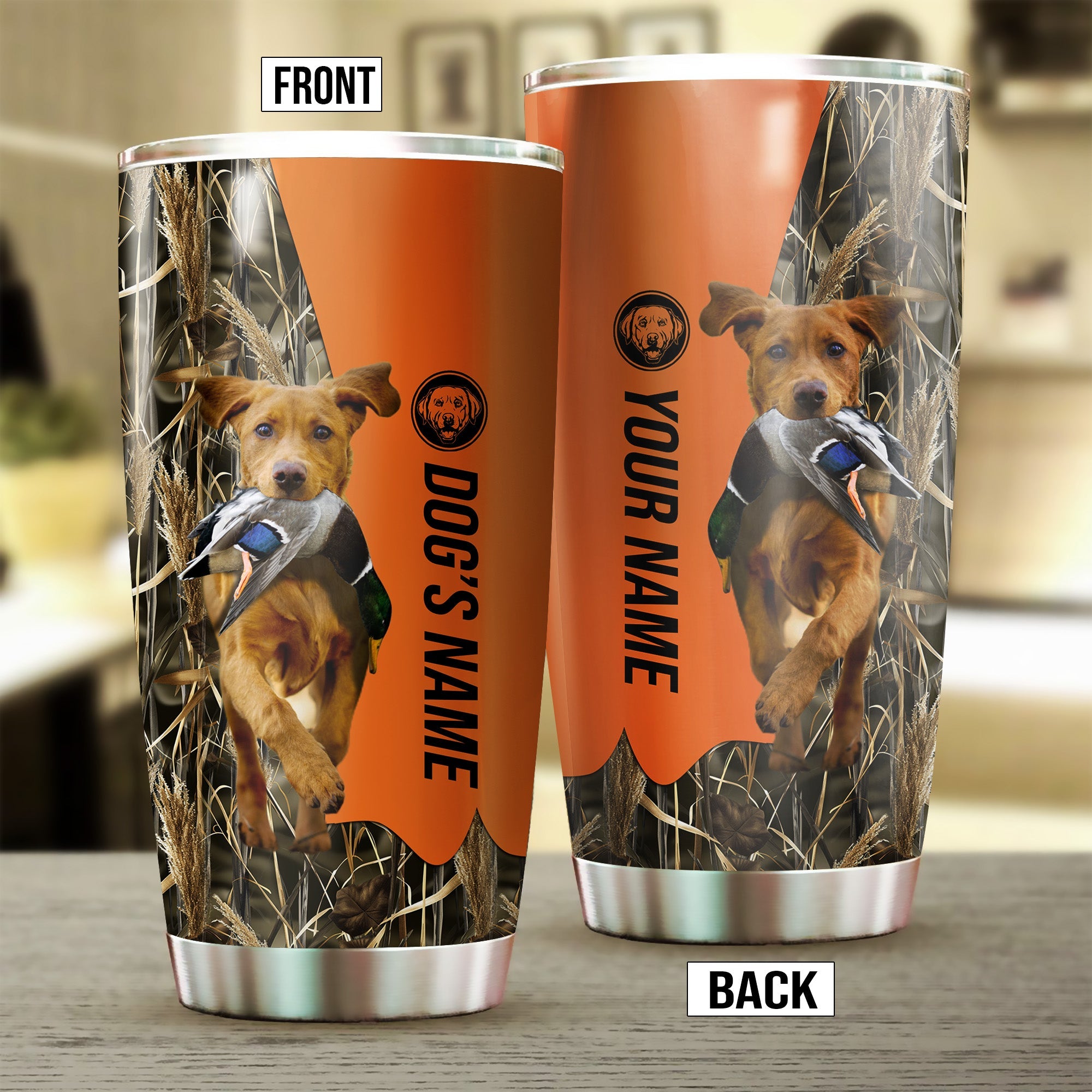 Fox Red Labrador Retriever Birds & Deer shed Hunting Dog Custom name Stainless Steel Tumbler Cup FSD4290