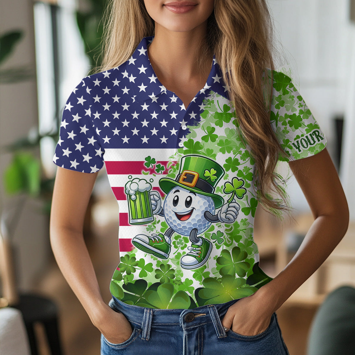 American flag St Patrick day shamrock golf pattern custom Women golf polo shirts, golf outfits ladies NQS9580