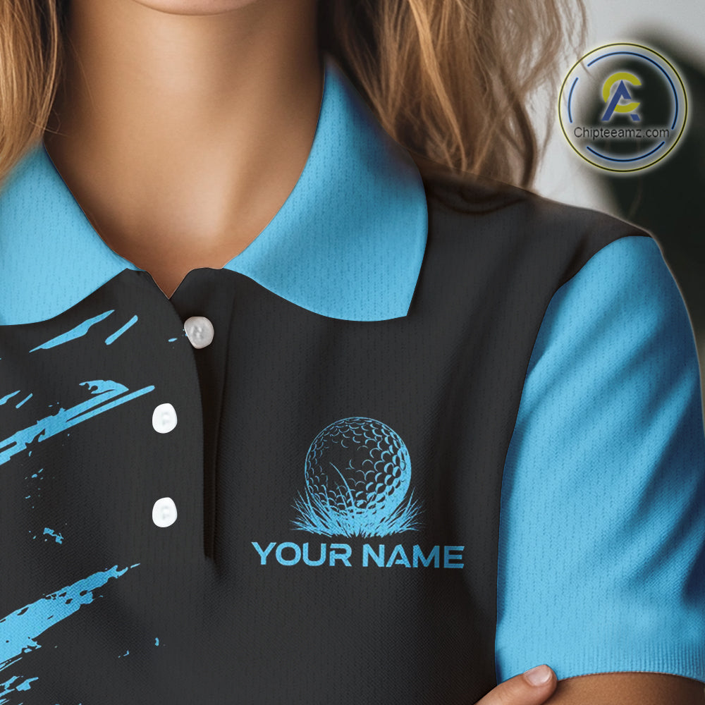 Black and Blue Golf polo shirts For Women Custom name ladies golf outfits, gifts for golf lovers NQS10019