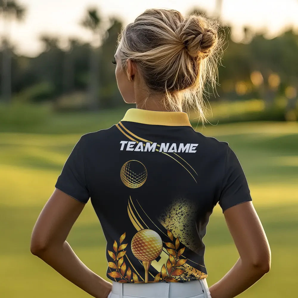 Black and Gold Women Golf polo shirts custom golf apparel team jerseys, personalized golf gifts NQS9594