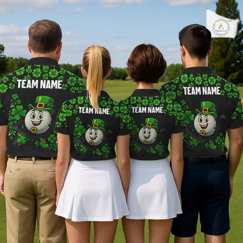Black and Green Shamrock Funny Golf Polo Shirt For Women Custom St Patrick's Day ladies golf outfit NQS11164
