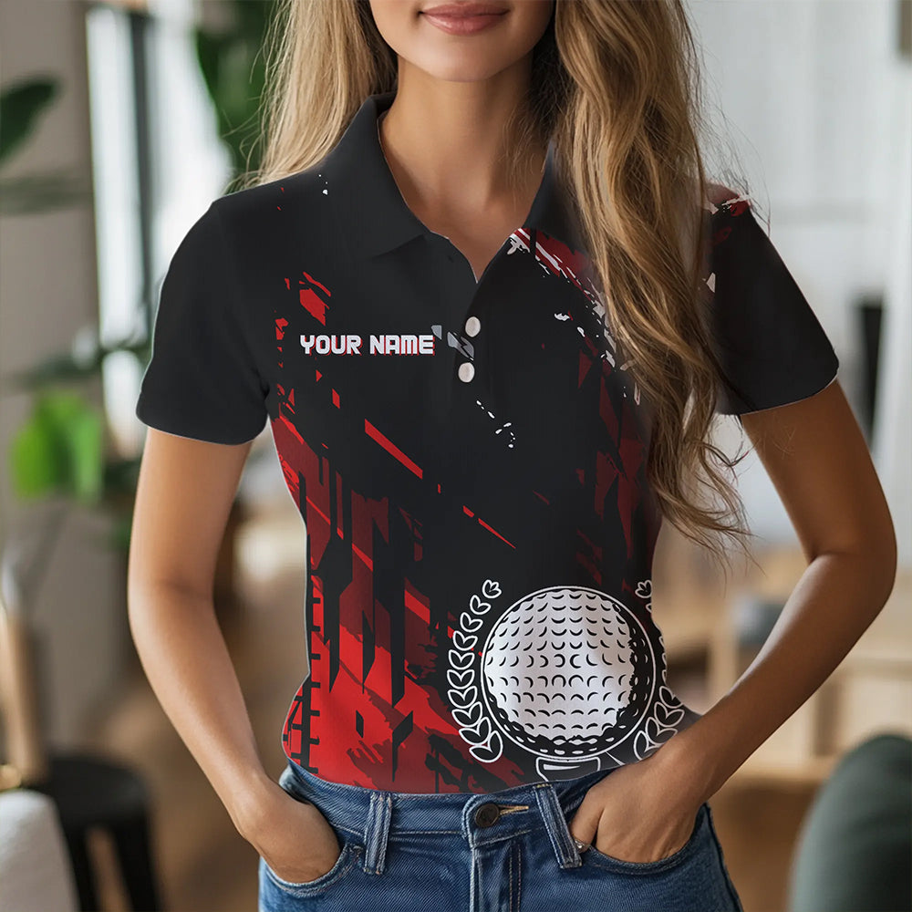 Black and Red Womens Golf Polo Shirts Custom retro golf ball clubs golf team league jerseys NQS9455