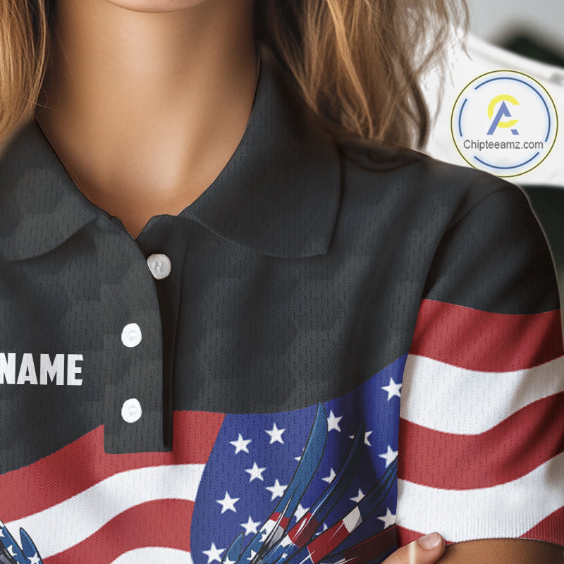 Black Golf pattern American Flag Eagle Women golf polo shirts Custom patriotic ladies golf attire NQS9986