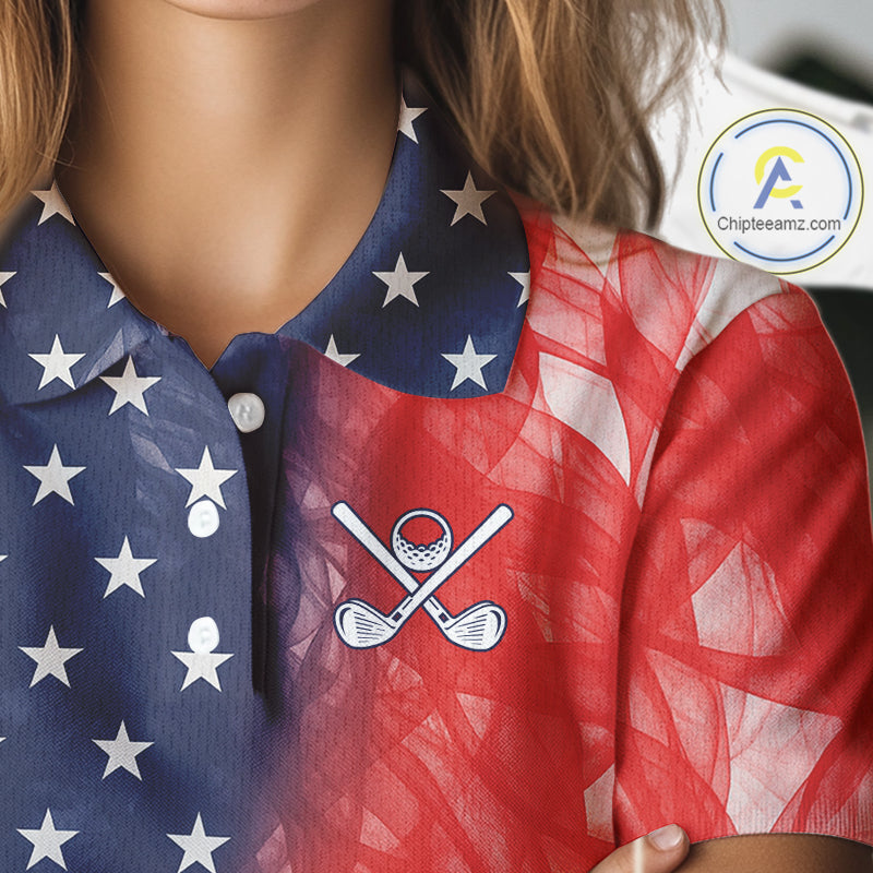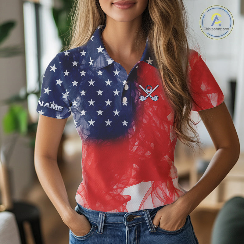 Custom Smoke American Flag Patriotic Golf Polo Shirt For Women, Personalized Ladies Golf top NQS10497