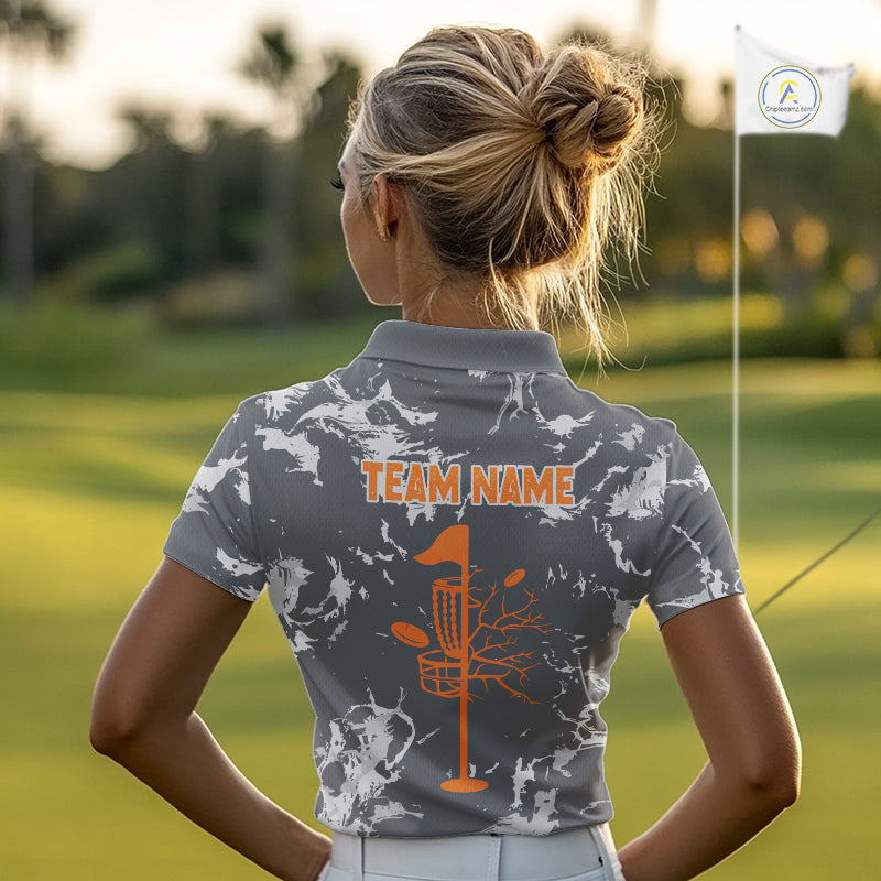 Gray Camo Orange Disc Golf basket Womens Disc golf polo shirt Custom team disc golf jerseys NQS9975