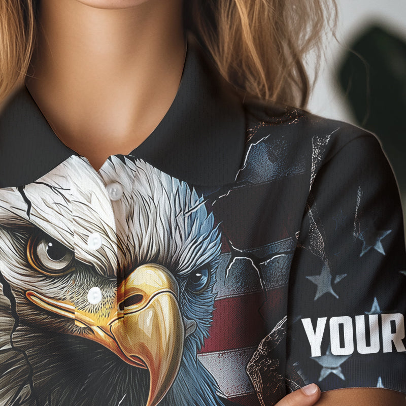 Personalized Eagle American flag Golf Polo Team Shirts For Women Custom Patriotic Ladies Golf attire NQS9620