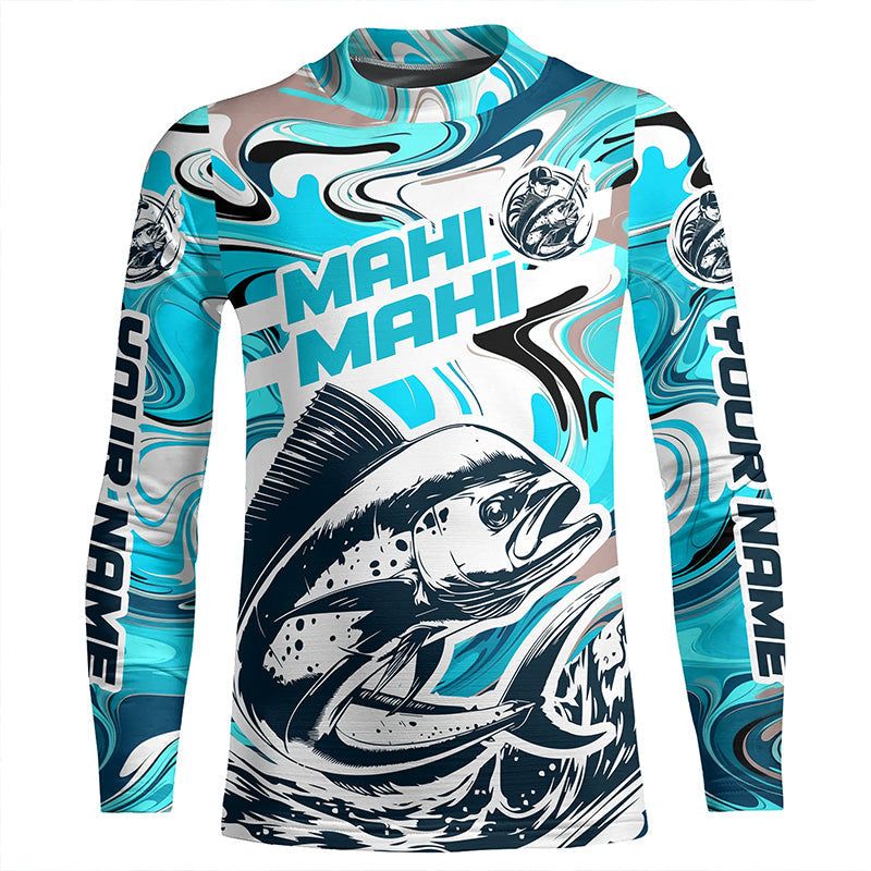 Custom Mahi Mahi Long Sleeve Uv Protection Fishing Shirts, Mahimahi Performance Shirts | Teal Blue IPHW6154
