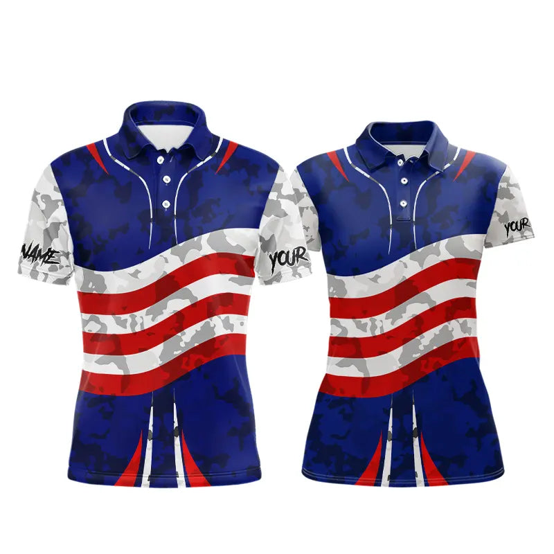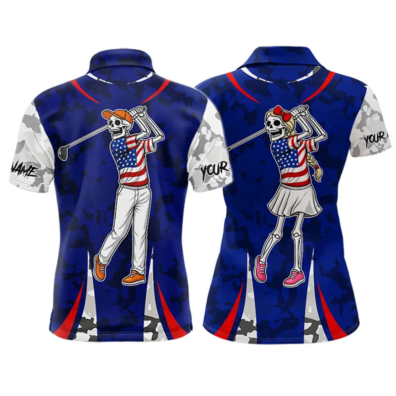 USA flag camo golf outfits funny skull matching men and womens golf shirts custom patriotic golf tops NQS11400