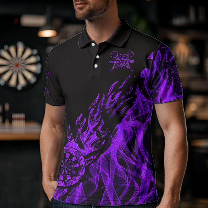 Black And Purple Dartboard Fire Flame Darts Polo, Quarter Zip Custom Dart Shirt For Men Dart Jersey TDM3409