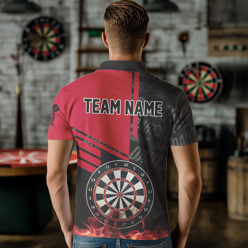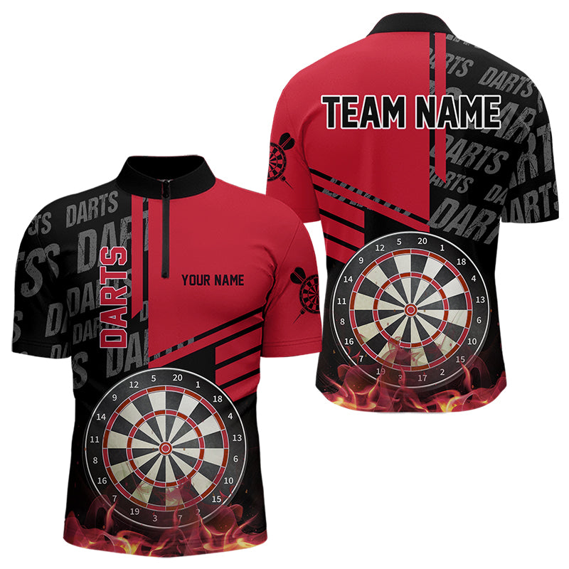 Black And Red Fire Darts Shirts For Men Custom Darts League Team Jerseys Darts Polo & 1/4 Zip TDM3412