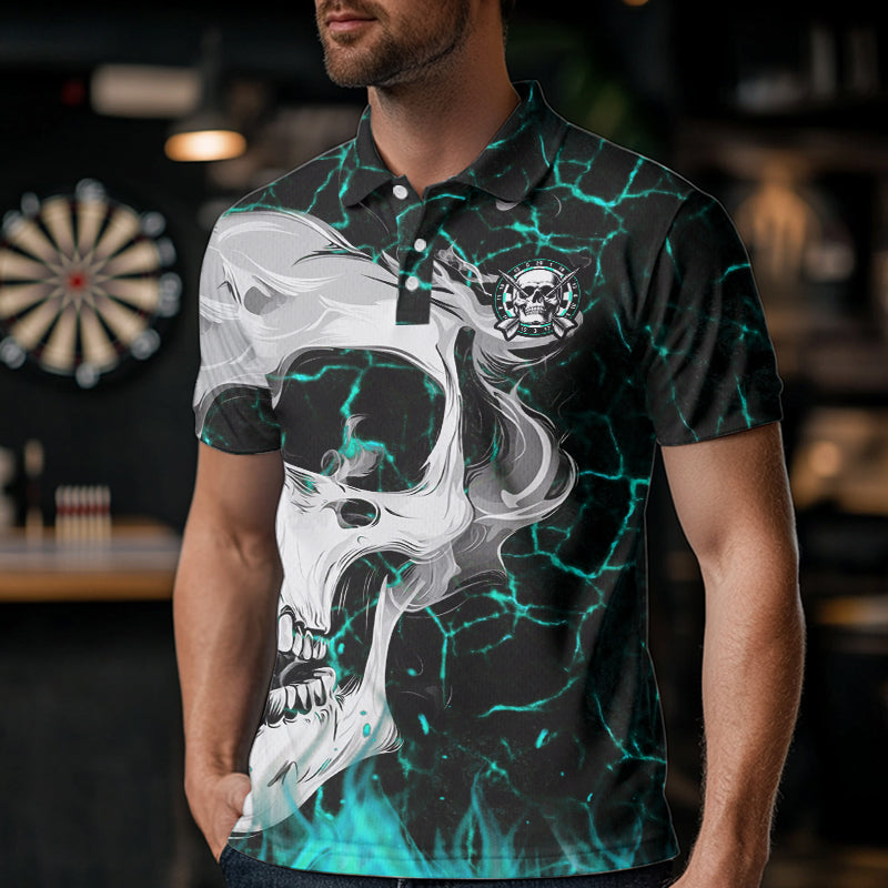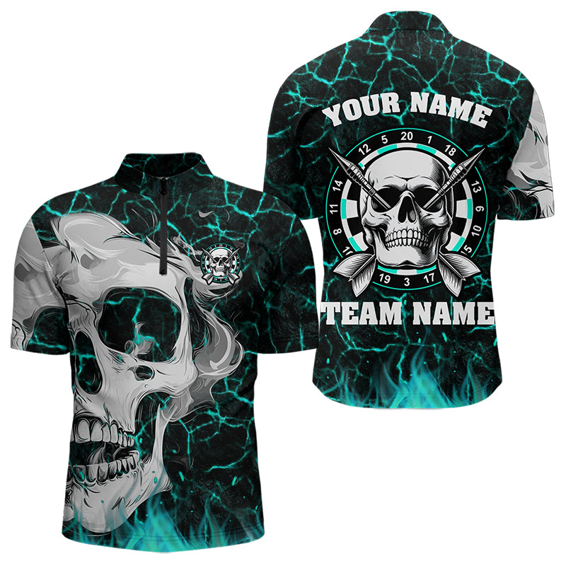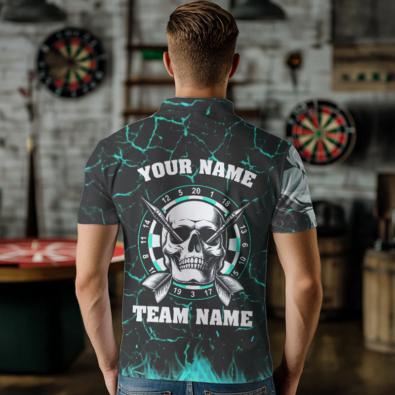 Personalized Turquoise Glowing Crack Skull Dart Shirts Custom Scary Dart Shirts For Men Dart Jersey TDM3416