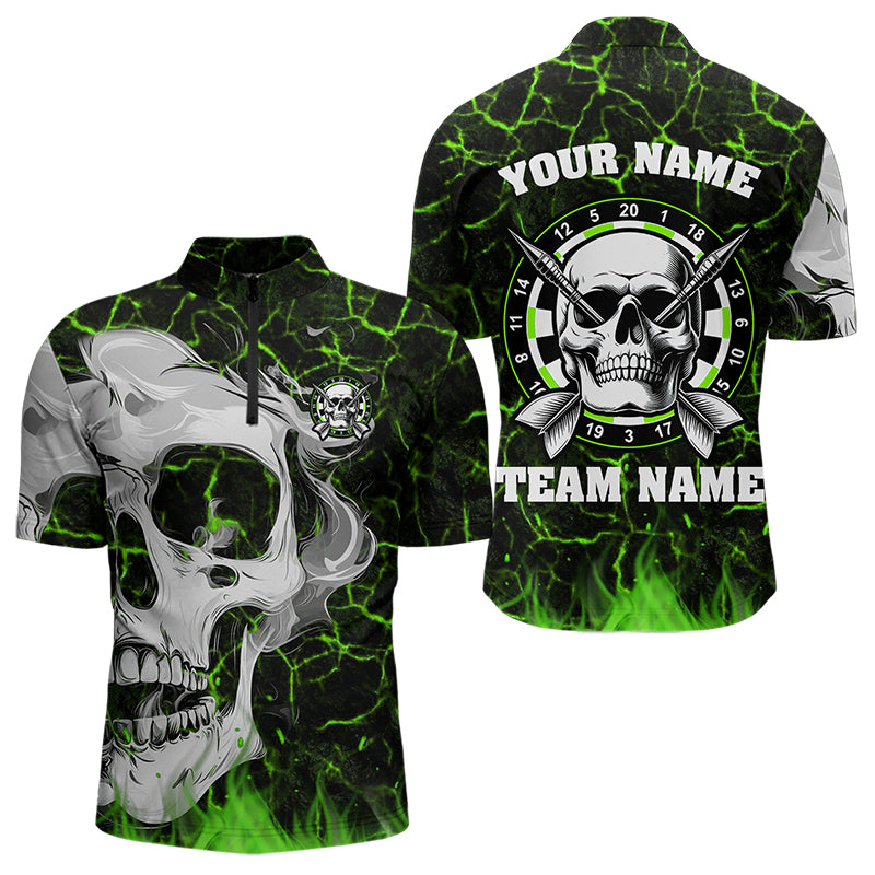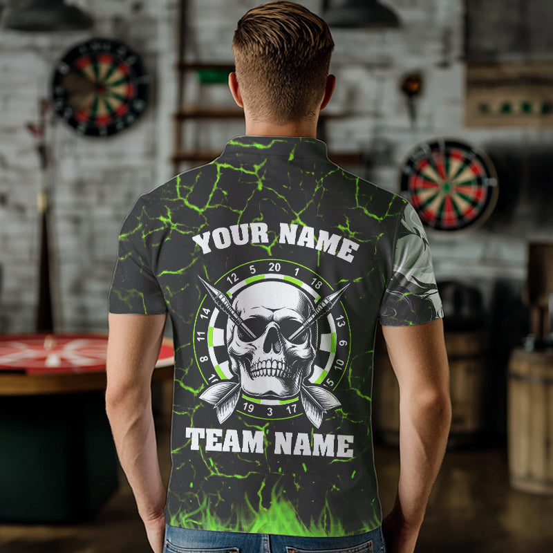 Personalized Green Glowing Fire Crack Skull Dart Shirt Custom Dart Shirts For Men Dart Team Jersey TDM3418