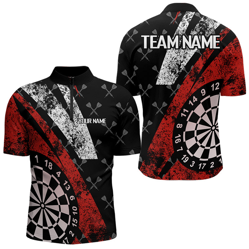 Black And Red Grunge Darts Polo & Quarter Zip Custom Darts Shirts For Men, Best Darts Team Jerseys TDM3447