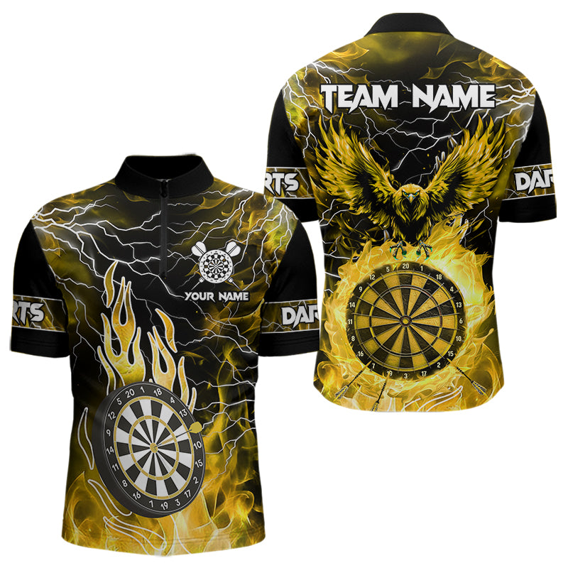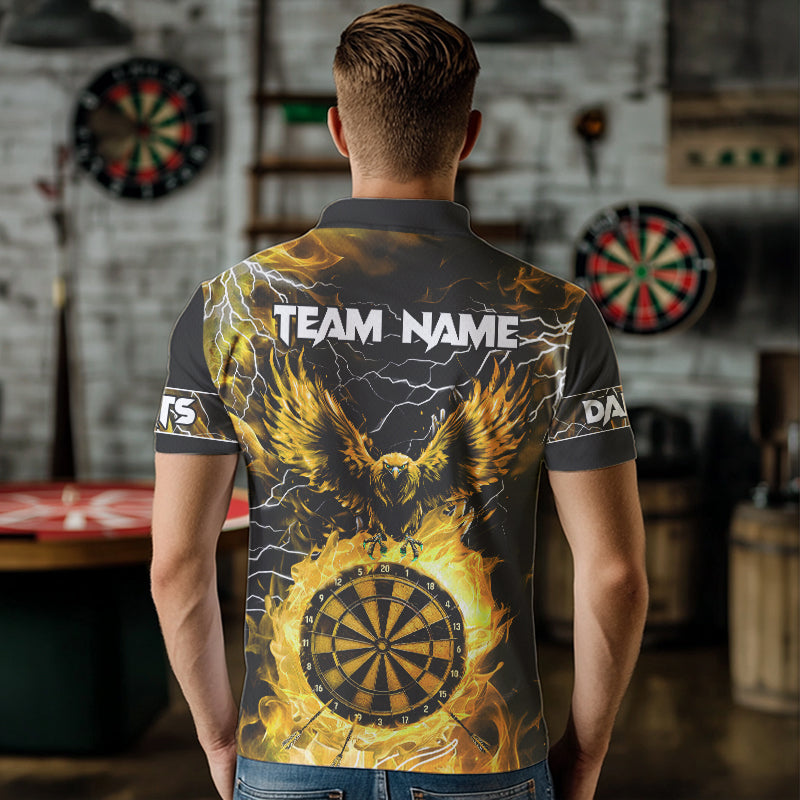 Yellow Dart Board Fire Flame Custom Eagle Dart Shirts For Men, Thunder Lightning Dart Team Jerseys TDM3508