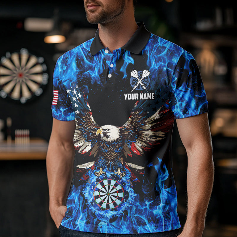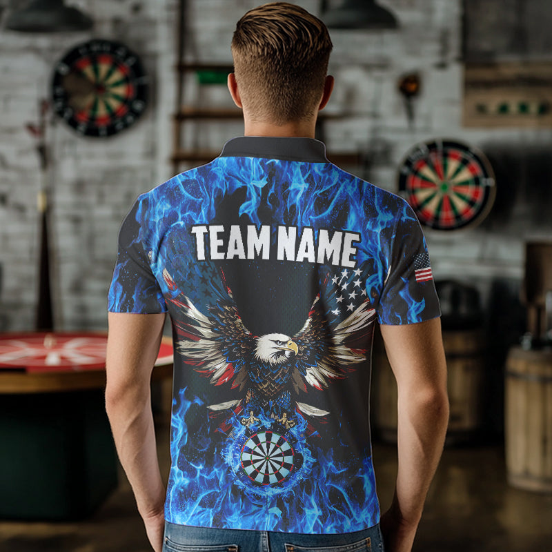 Blue Flaming American Flag Eagle Custom 3D Dart Shirts For Men, Patriotic Darts Team Jersey TDM3556