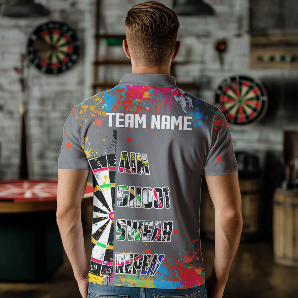 Funny Dartboards Colorful Paint Aim Shoot Swear Repeat Custom Men Darts Shirt, Dart Jerseys |Grey TDM3639