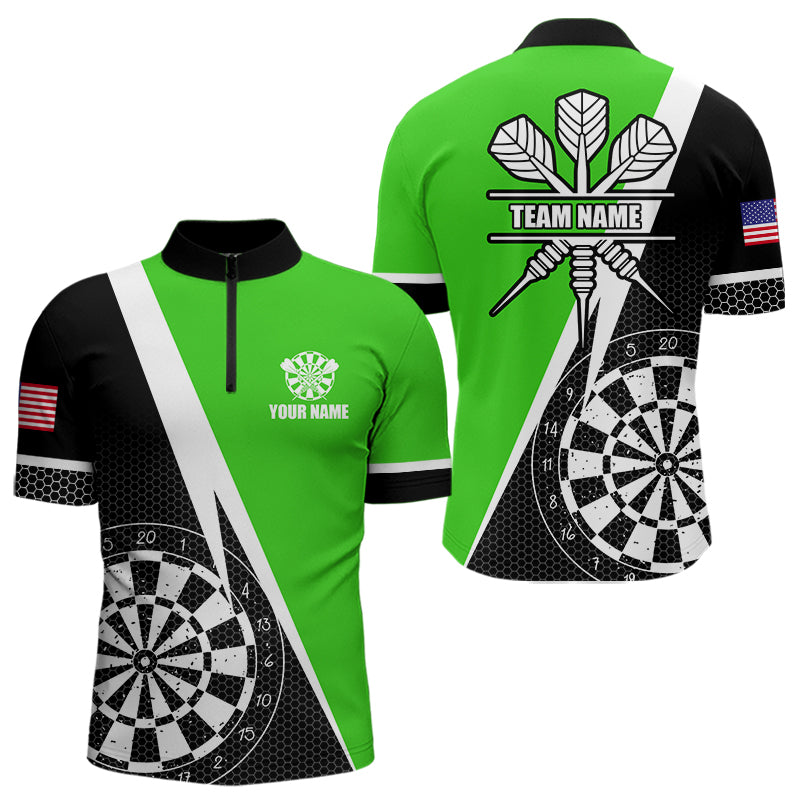 Black And Green Grunge Dartboard Men Darts Polo & Quarter Zip For Men Custom Dart Jersey Uniform TDM3644