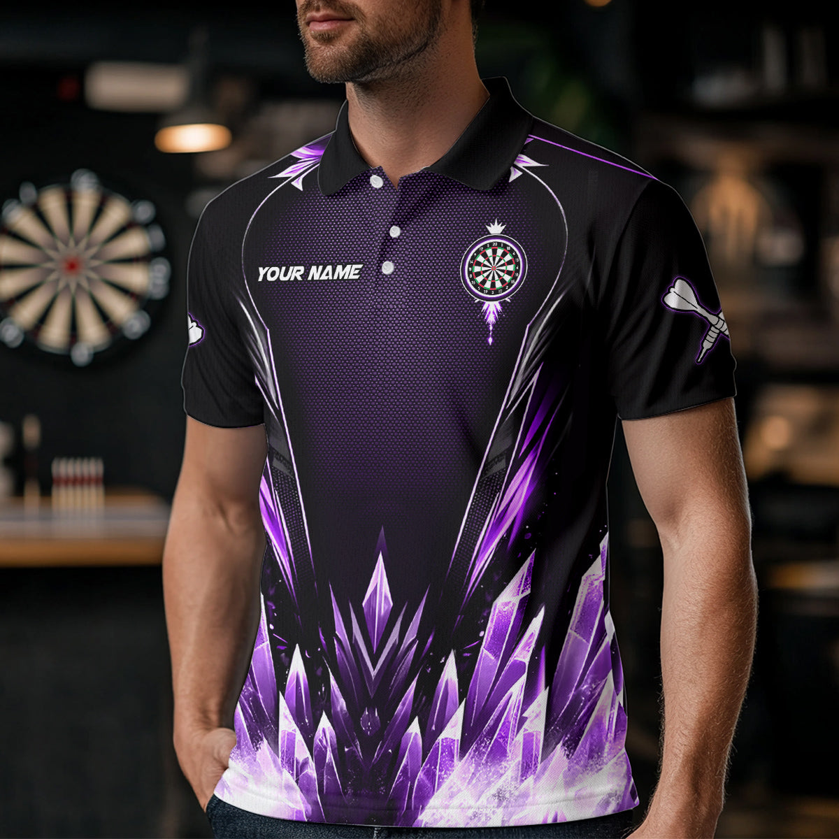 Personalized Purple Icy Dartboard Custom Darts Polo & Quarter Zip For Men, Team Dart Jersey Outfit TDM3671