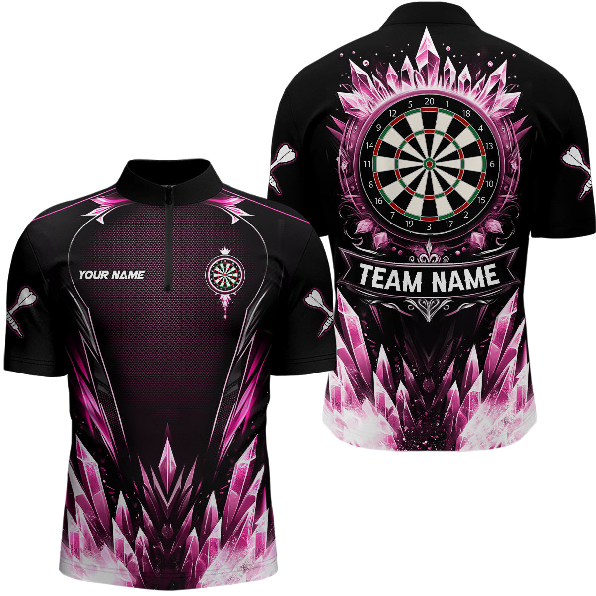 Personalized Pink Icy Dartboard Custom Darts Polo & Quarter Zip For Men, Team Dart Jerseys Outfit TDM3672