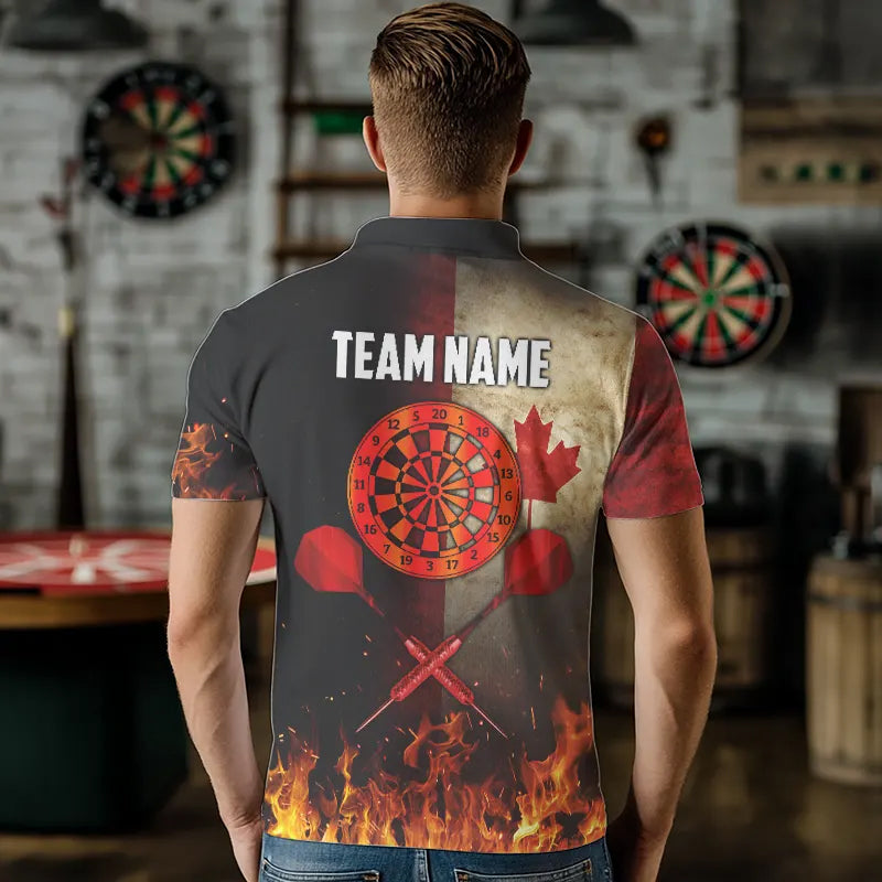 Personalized Retro Canada Flag Flame Dartboard Darts Shirts For Men, Patriotic Canadian Dart Jersey TDM3675