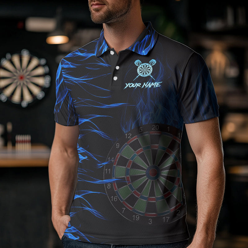 Personalized Blue Flaming 3D Fire Dart Shirts For Men Custom Team Dart Jerseys Polo & Quarter Zip TDM3685