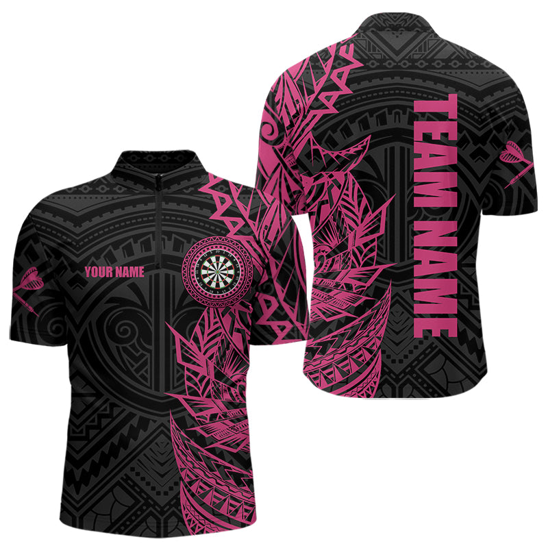 Personalized Pink Black Tribal Darts Polo & Quarter Zip Custom Dart Shirts For Men Dart Jerseys TDM3700