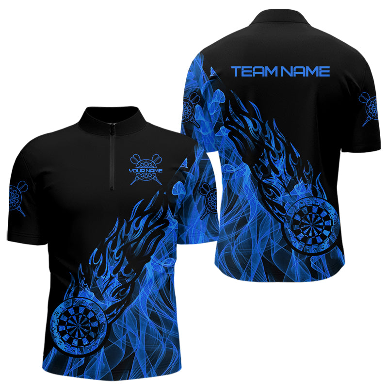 Black And Blue Dartboard Fire Flame Darts Polo & Quarter Zip Custom Dart Shirt For Men Dart Jersey TDM3706