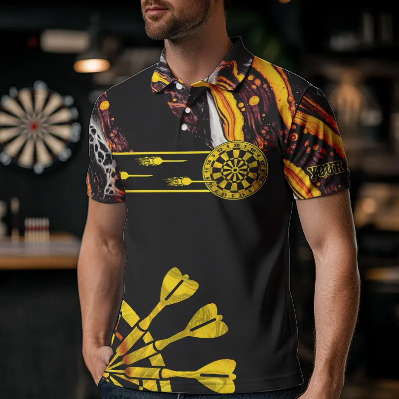 Yellow Golden Darts Tie Dye Polo & Quarter Zip Custom Dart Shirts For Men Glowing Dart Jerseys TDM3709
