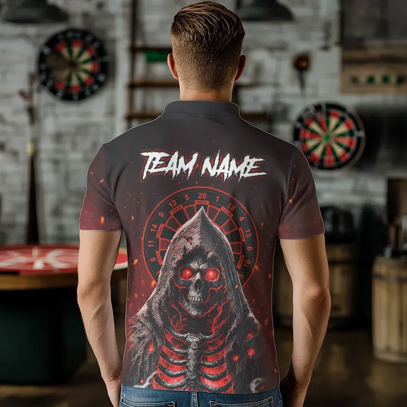 Red And Black Glowing Fire Death Skeleton Dart Shirts For Men Custom Dart Jerseys Polo & 1/4 Zip TDM3712