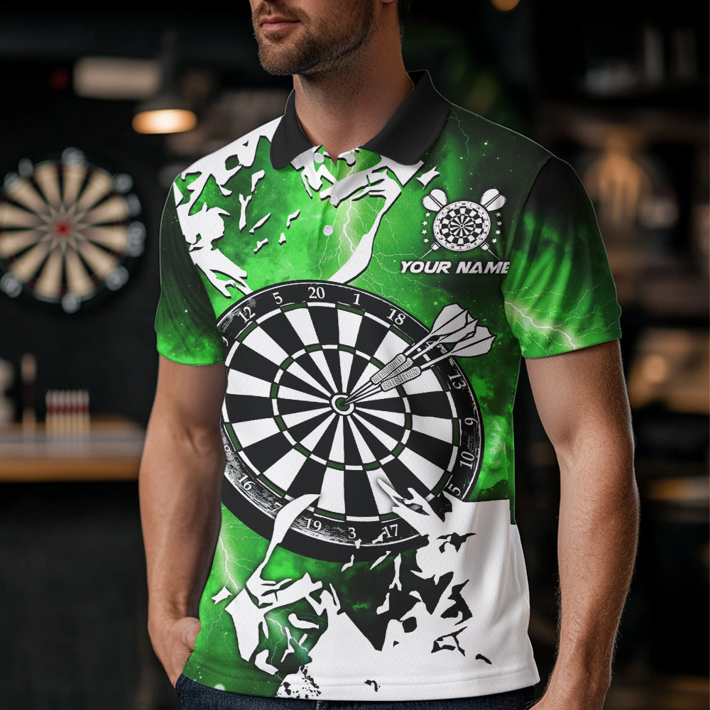 Lightning Grunge Dartboard Custom 3D Printed Darts Shirts For Men, Darts Team Jerseys |Green TDM3723