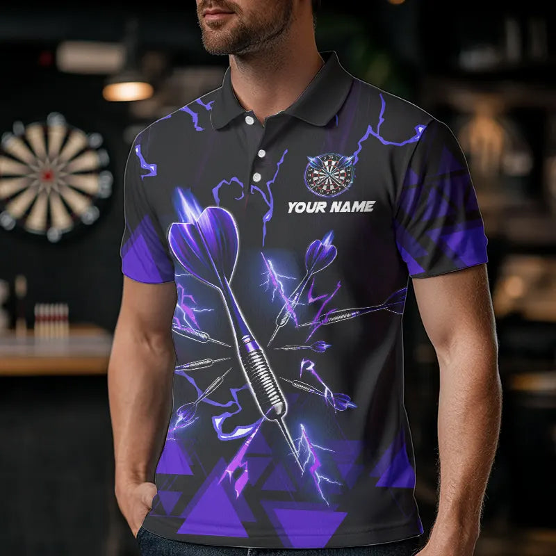 Blue Darts Arrow Thunder Lightning Dart Shirts For Men Custom Dart Team Jerseys Polo & 1/4 Zip TDM3765