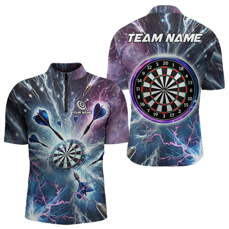 Blue And Purple Galaxy Thunder Lightning Dart Shirts For Men Custom Dart Jerseys Polo & 1/4 Zip TDM3768