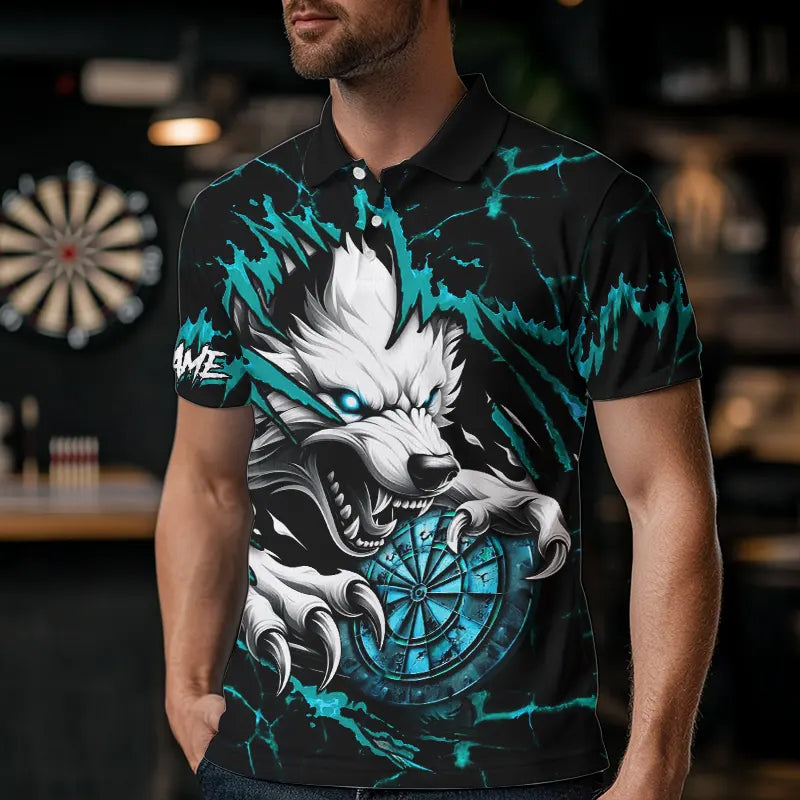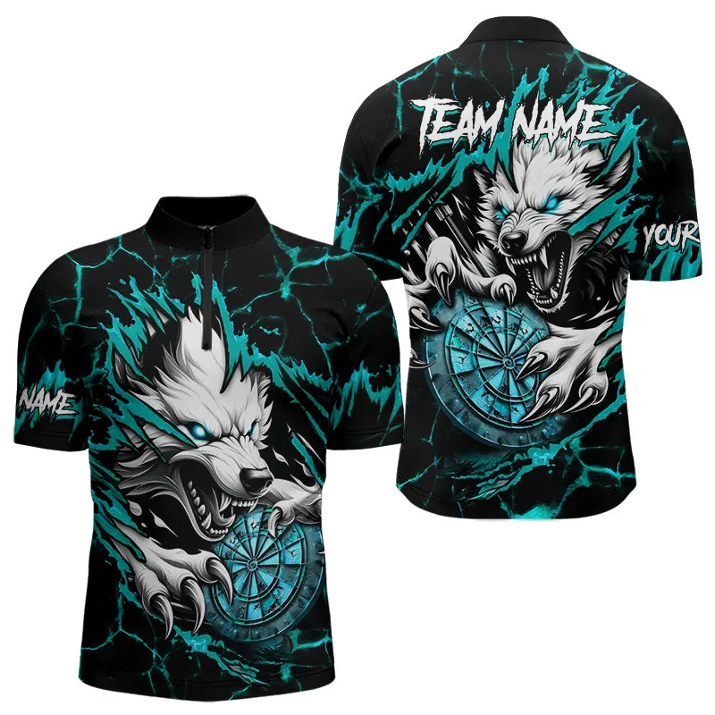 Personalized Wolf Lightning Darts Polo & Quarter Zip Custom Men Dart Shirts Darts Jersey |Turquoise TDM3772
