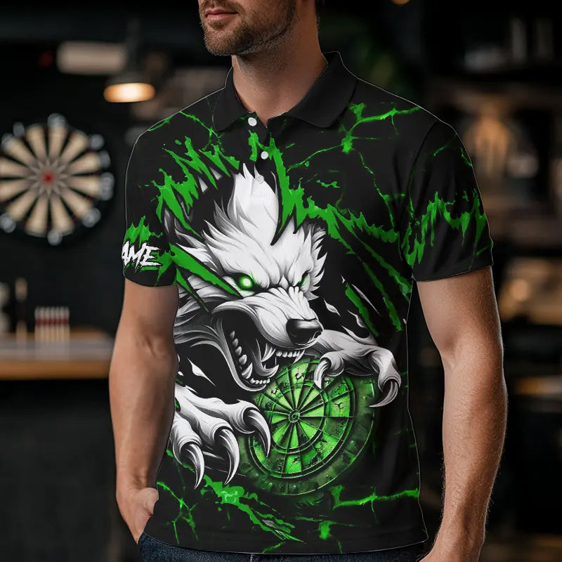 Personalized Wolf Lightning Darts Polo & Quarter Zip Custom Dart Shirts For Men Darts Jersey |Green TDM3773