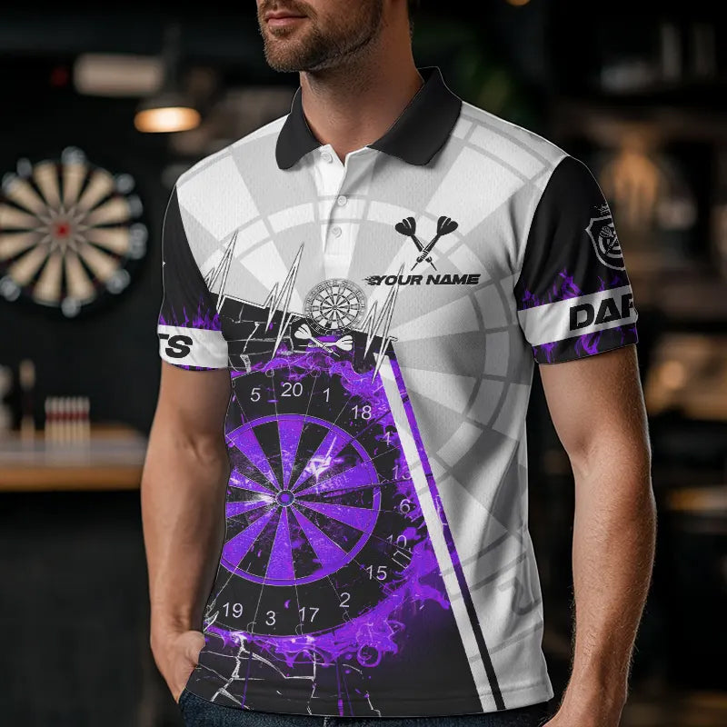Personalized Purple Break Glass Dartboard Fire Polo, 1/4 Zip Custom Dart Shirts For Men Dart Jersey TDM3774