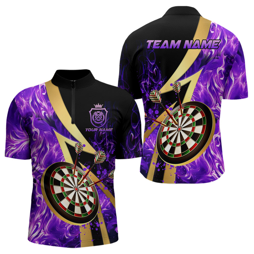 Personalized Purple And Gold Smoke Swirling Men Dart Shirts, Dart Team Shirts Custom Dart Jerseys TDM3784