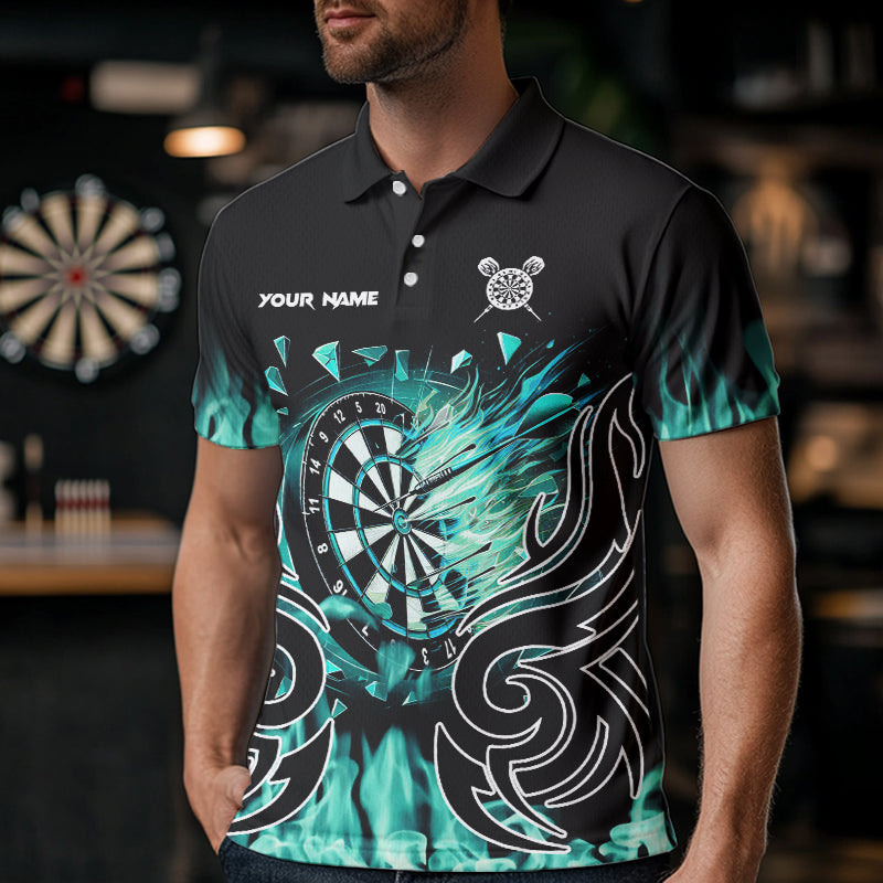 Custom Turquoise Tribal Flame Dart Shirt For Men, Dart Jersey Pocket Option TDM3795