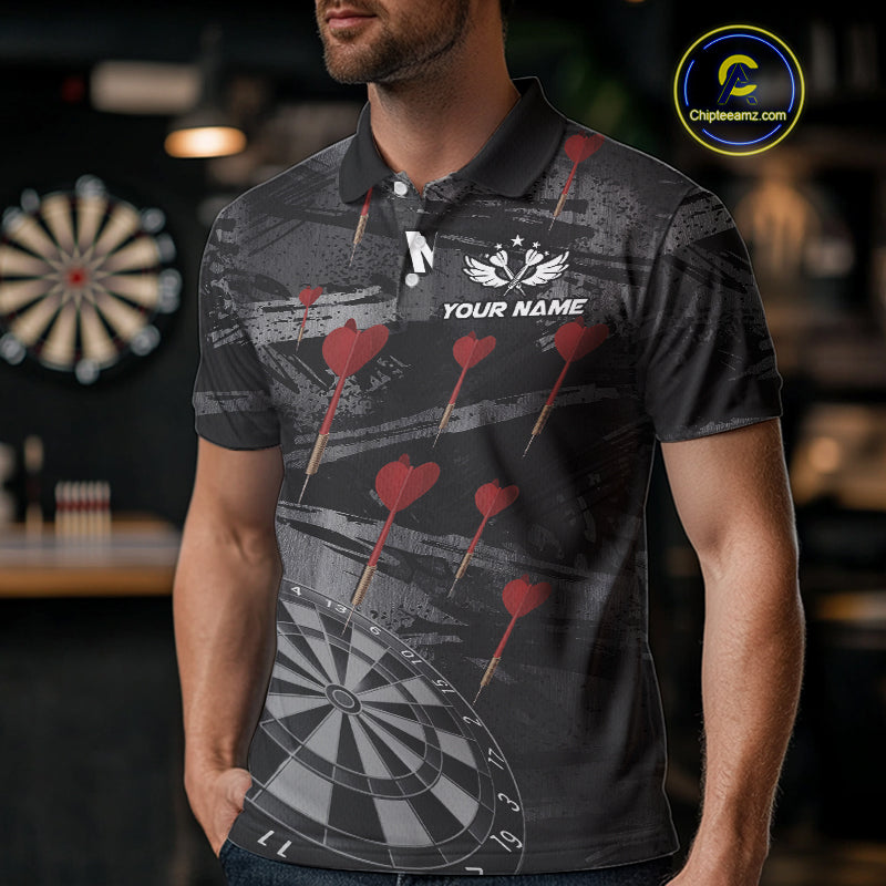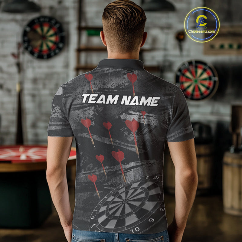 Black And Grey Grunge Dart Arrow Dart Shirts For Men Custom Dart Jerseys, Darts Team Shirts TDM3822