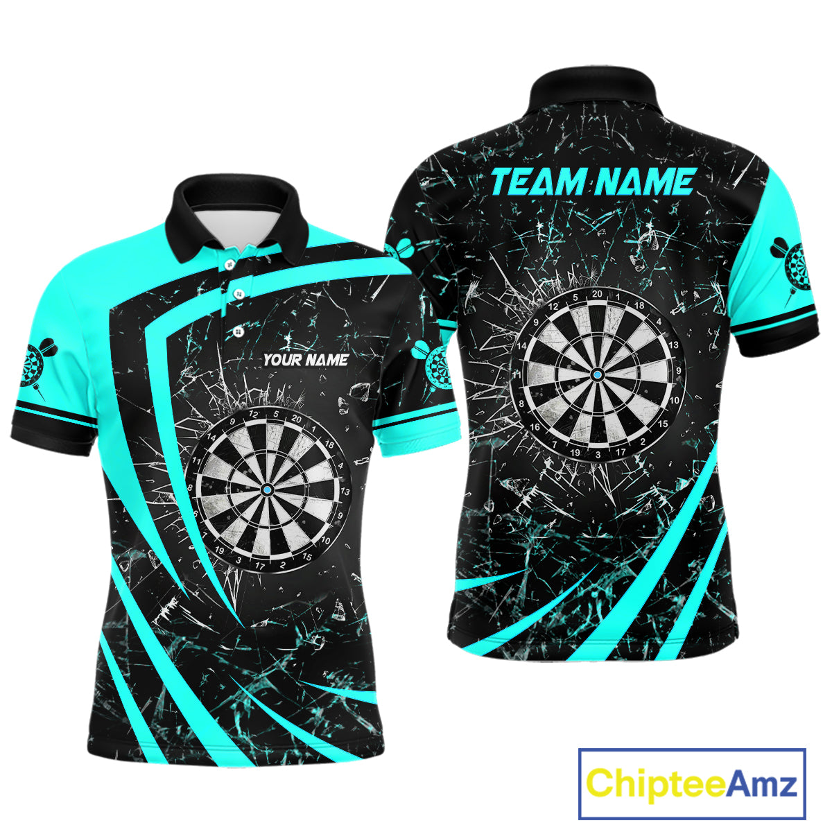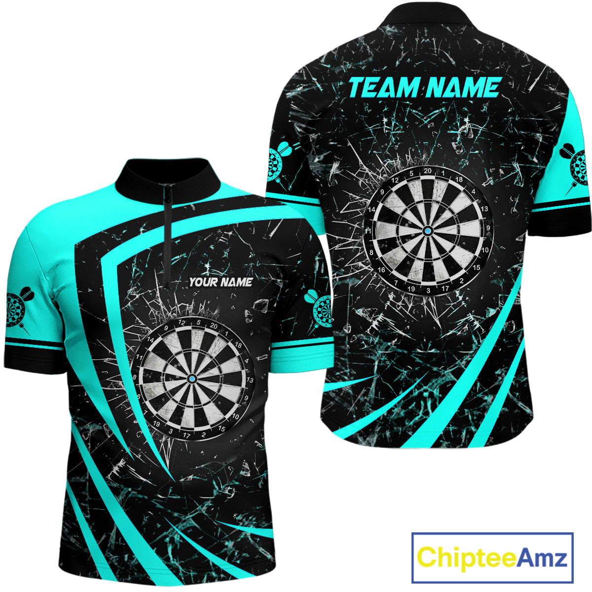 Personalized Turquoise Break Glass Dart Shirts For Men Custom Funny Dart Jerseys Polo & 1/4 Zip TDM3876