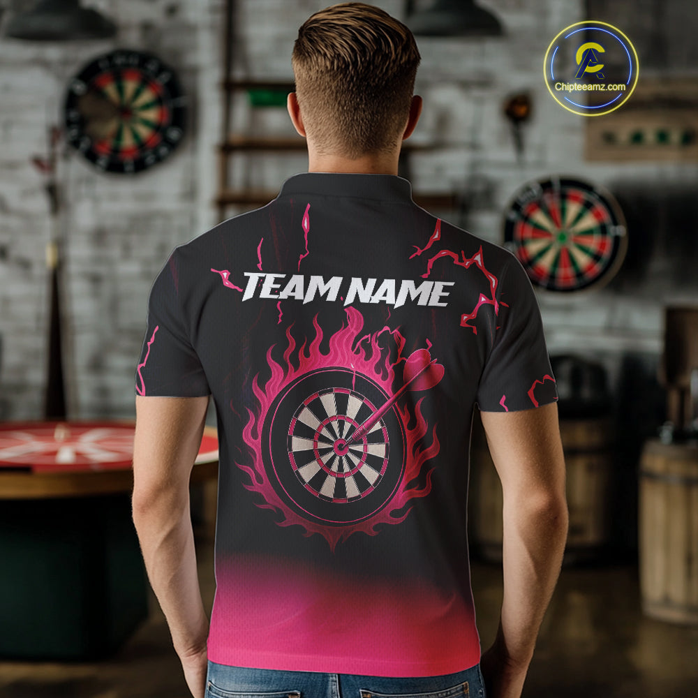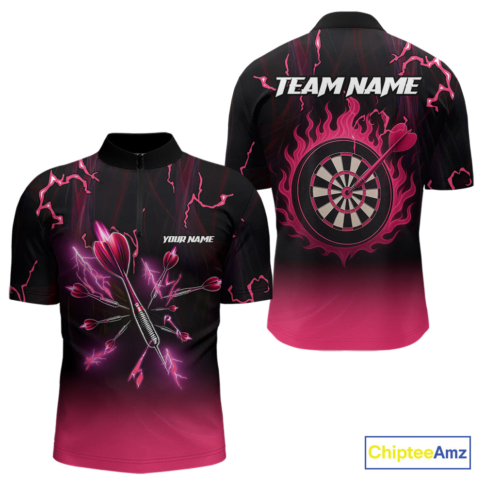 Pink And Black Lightning Arrow Custom Dart Shirts For Men| Darts Team Jersey – Polo & Quarter Zip TDM3965