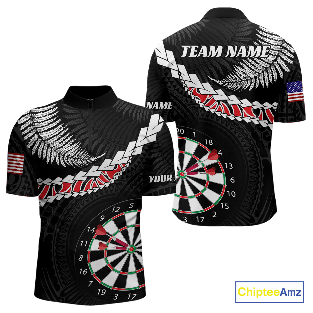 Personalized US Flag Tribal Dart Shirts For Men Custom Team Polo & Quarter Zip Dart Jerseys TDM3992