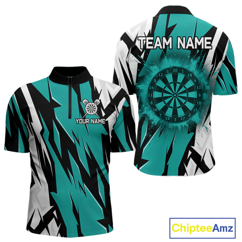 Turquoise Darts Jerseys For Men Custom Darts Team Shirts Polo & Quarter Zip, Darts Clothing TDM4008
