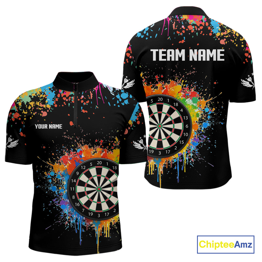 Funny Dartboard Colorful Paint Splash Custom Dart Shirts For Men, Darts Team Jerseys |Black TDM4016