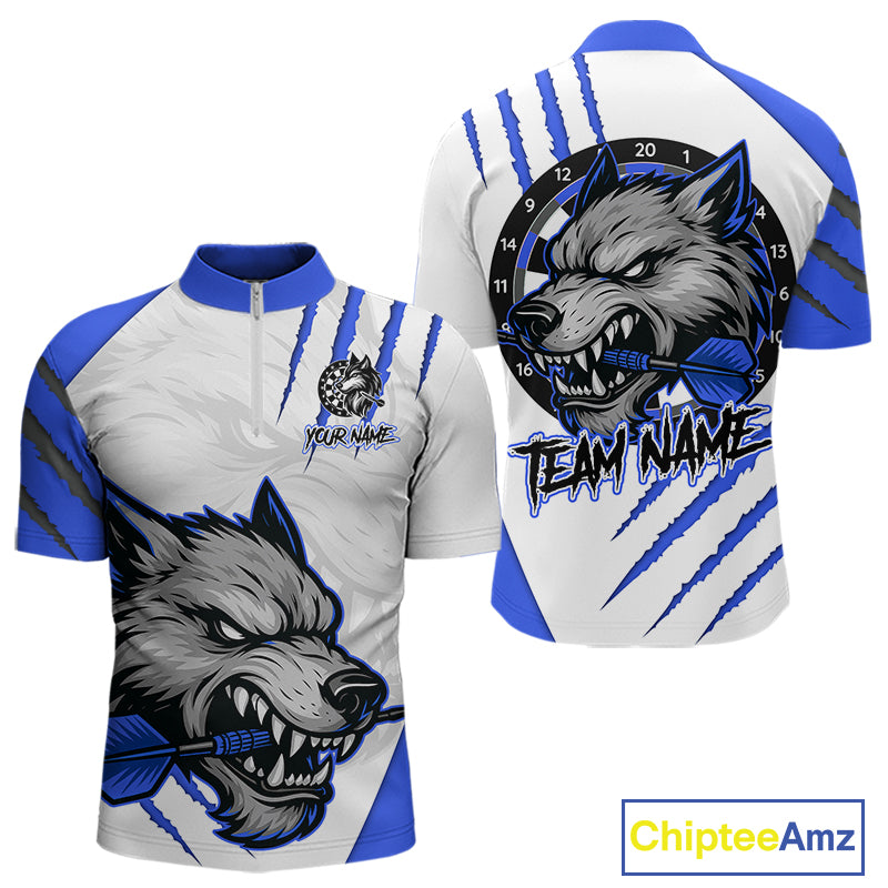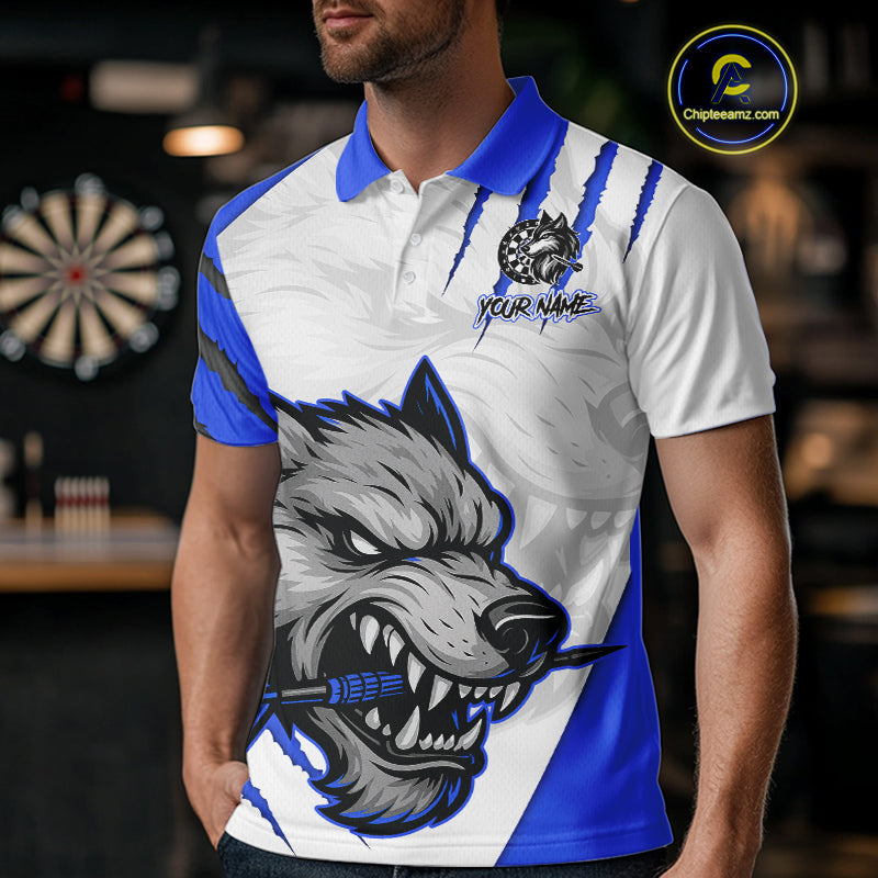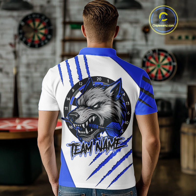 Blue And White Custom Claw Wolf Dart Shirts For Men, Dart Team Shirt Polo & 1/4 Zip, Dart Jerseys TDM4032
