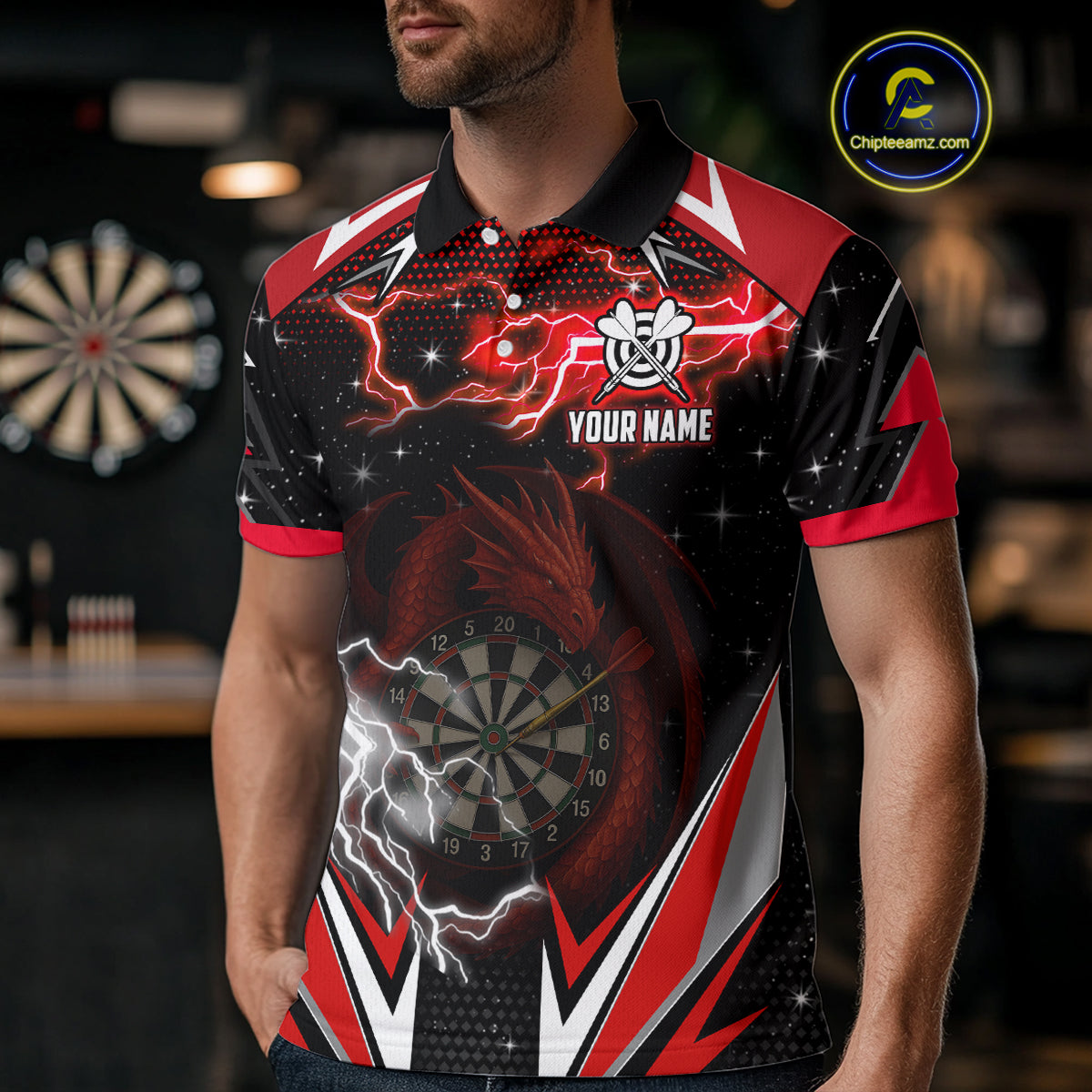 Personalized Dragon Dart Shirts For Men – Custom Thunder Red Darts Team Jerseys Polo & Quarter Zip TDM4037