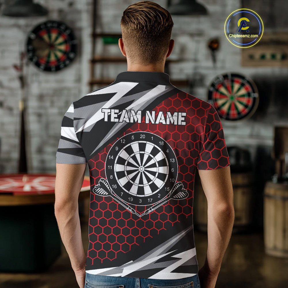Personalized Dartboard Red Hexagon Dart Shirts For Men Custom Team Polo & 1/4 Zip Darts Jerseys TDM4116