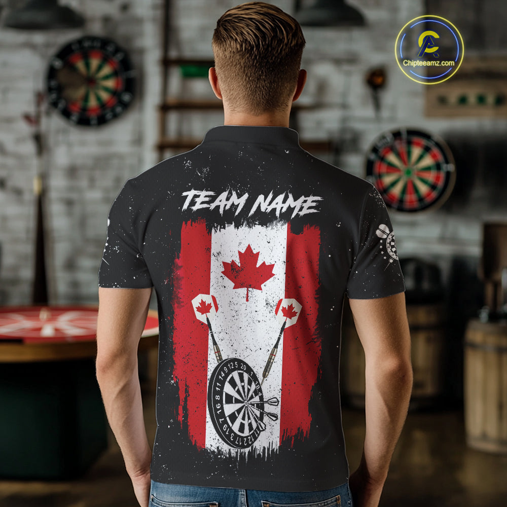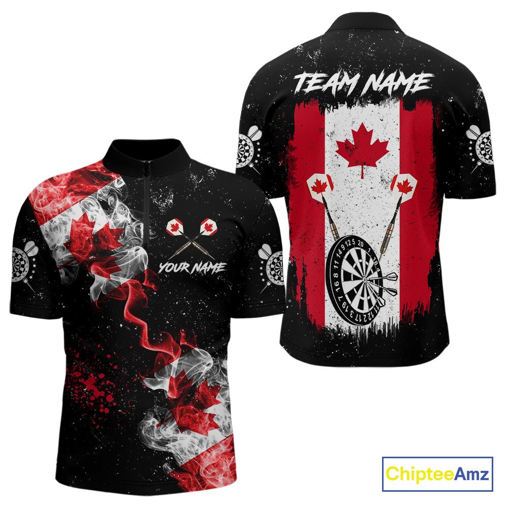 Customized Grunge Canada Flag Smoke Darts Polo & Quarter-Zip Shirt, Patriotic Dart Jersey For Men TDM4129